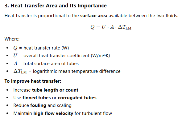 • Shell-side fluid: Flows around the tubes inside the shell